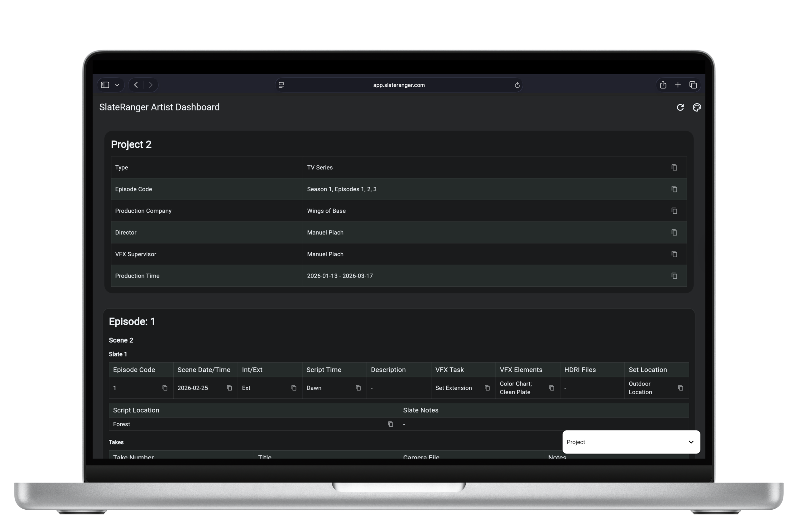 Generate secure, shareable links that give artists instant access to the information they need – clearly structured, easy to navigate, and ready for post-production. The Artist Dashboard streamlines communication between set and post, reduces manual handovers, and ensures everyone works with accurate, up-to-date data.